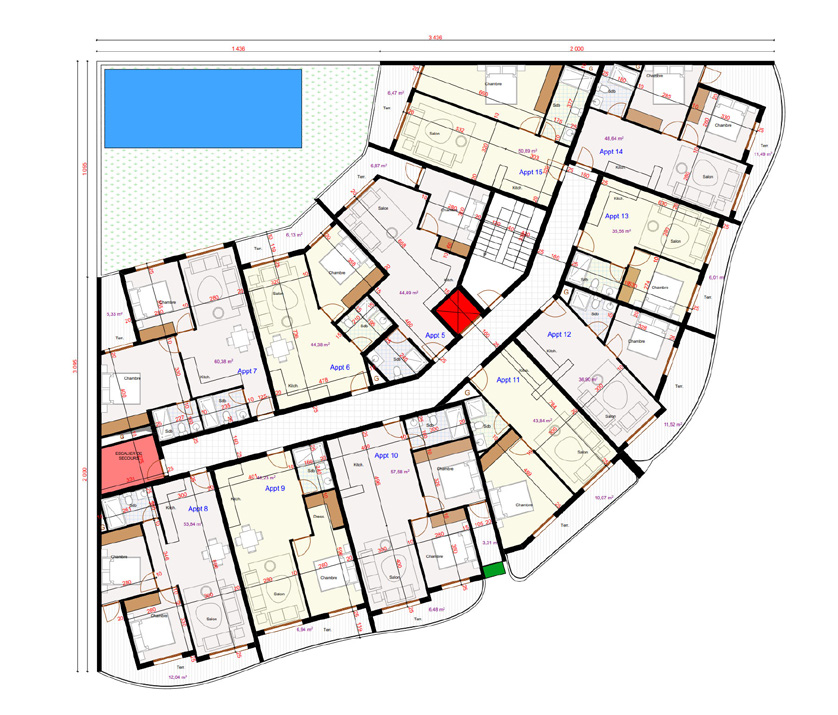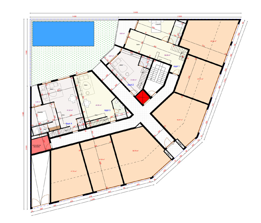 - Logements de 36 à 100 m², incluant studios, appartements et duplex de prestige.